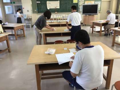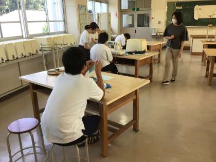 家庭科では裁縫をしています。さまざまな縫い方の練習をしています。