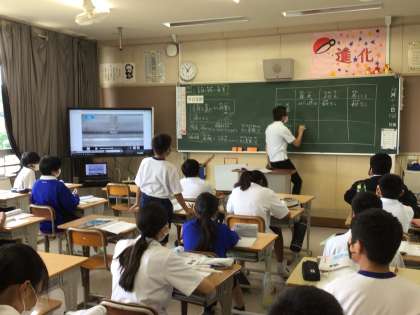 理科では、気体の発生と性質について動画を見ながら学習しています。