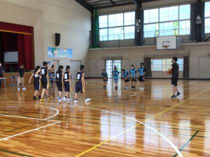 バスケットボール部です。女子は練習試合をしています。