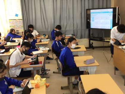 理科では、遺伝子についてのレポートをタブレットで作成しています。