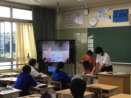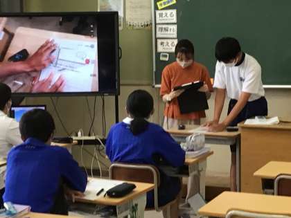 数学では、タブレットと映像で学習内容を共有しています。