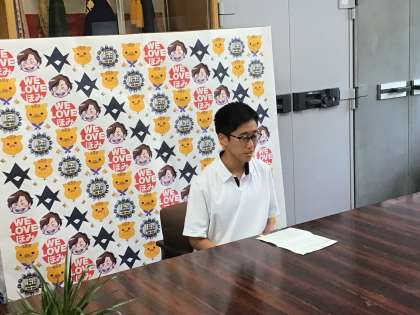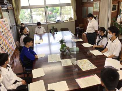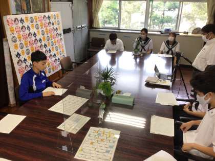 今日は、後期生徒会役員立候補者の演説会です。校長室からリモートで行っています。