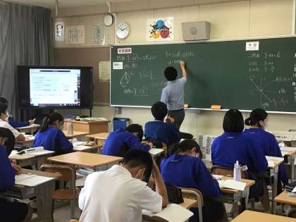 数学は二次関数の学習をしています。少人数指導で質問をしやすい雰囲気で授業を行っています。