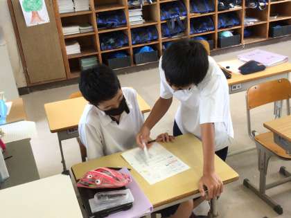 数学の少人数授業は、友だちとの教え合いタイムがあります。
