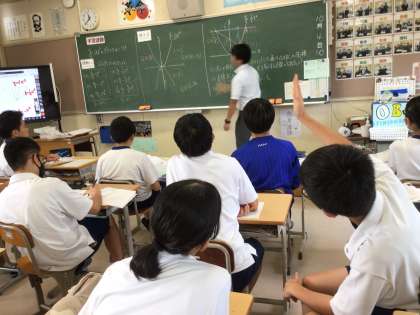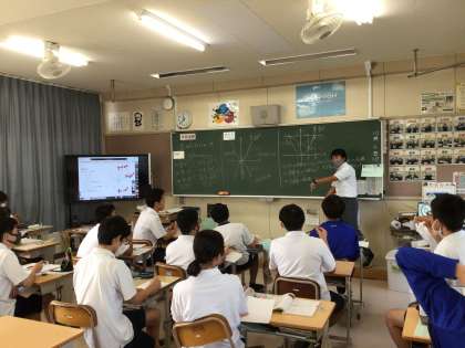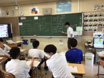 数学の応用問題について、生徒同士が意見を交わしながら答えを導き出しています。