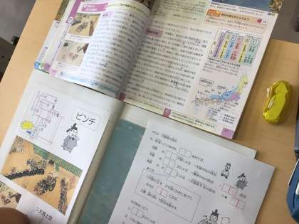 社会科では、音声社会の学習プリントで、学習内容を確認します。