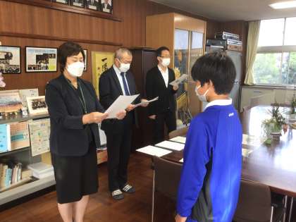 1年生後期学級役員の認証式を行いました。