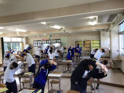 音楽の授業です。担当の生徒が前で指示を出し学習を進めます。