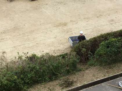 体育祭に向けて、保護者のみなさんに気持ちよく観ていただけるように、樹木の剪定をしてもらっています。