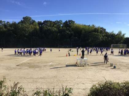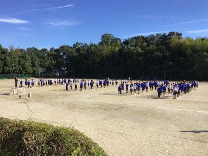 2年生が開会式の入退場、綱引きの隊形移動などの練習をしています。とてもきびきびした動きです。