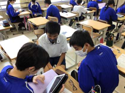 今日は、教育委員会の学校訪問です。生徒の様子や授業の様子を参観してくださっています。