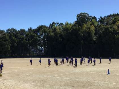 1年生の体育です。応援や大縄跳びの練習をしています。リーダーが指示を出して進めています。