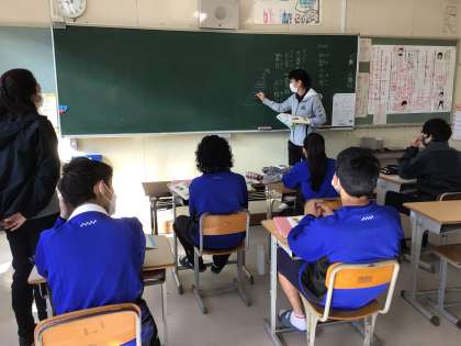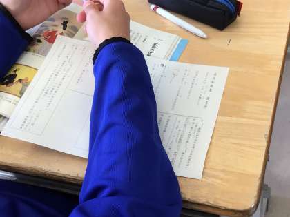 国語では和歌について学習しています。リライト教材を用いて理解度を高めています。