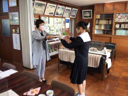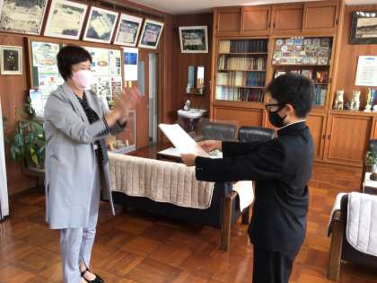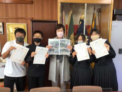 伊保起倒流棒の手伝統芸能に9年間携わり、地域のコミュニティに貢献した3年生の4名の生徒です。