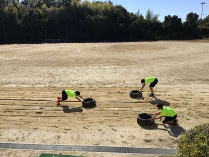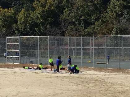 陸上部の練習の様子です。基礎トレーニングに力が入ります。