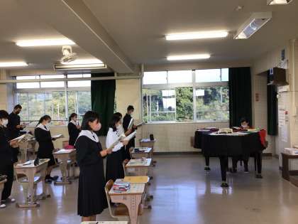 音楽は、合唱練習ができるようになってきました。「夢の世界を」の合唱です。