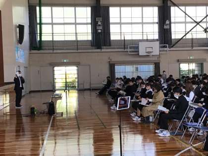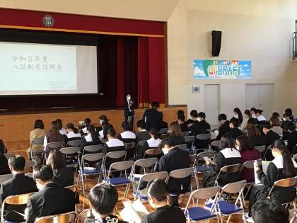 令和5年度の入試制度説明会を開催しています。外国人保護者の方は、リモートを通して通訳をしています。