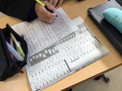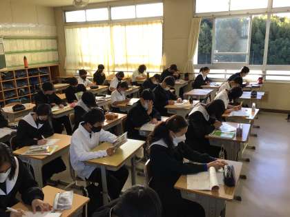 朝の学習の様子です。自分のやり方で復習を進めています。