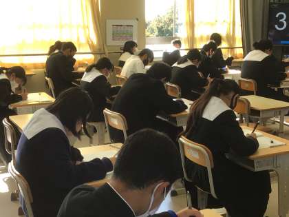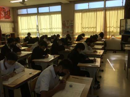 今日で定期テストが終わります。最後まで粘り強く問題を解いています。