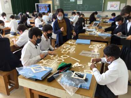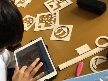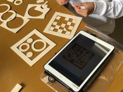 構成美の要素について、タブレットを活用していろいろなかたちのパーツを組み合わせています。