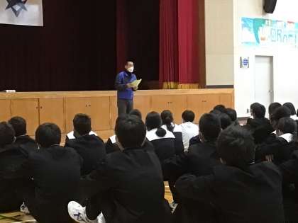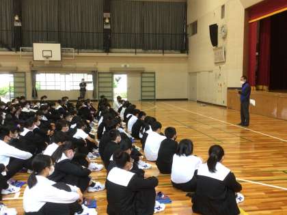 自然教室に向けて学年集会を行なっています。