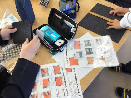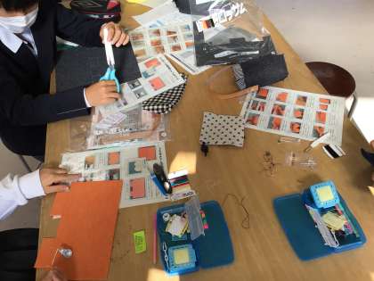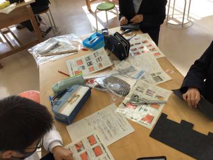 家庭科では、裁縫の作業をわかりやすくするために、各班に手順ファイルがあります。生徒は、自分でファイルを見て作業を進めます。