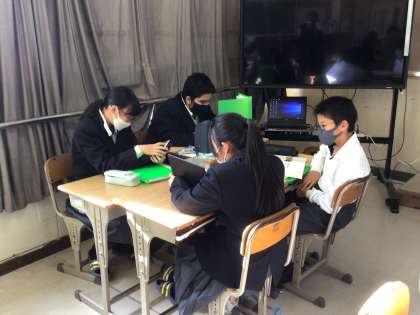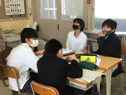 国語ではグループ発表のテーマを決めるための話し合いをしています。