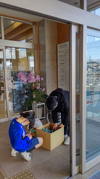 保見交流館の依頼を受けて、クリスマスマーケットのイベントのための飾り付けをしています。
