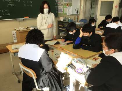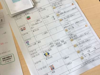 家庭科では年中行事に関する食文化についてカードを使ってグループで学び合っています。