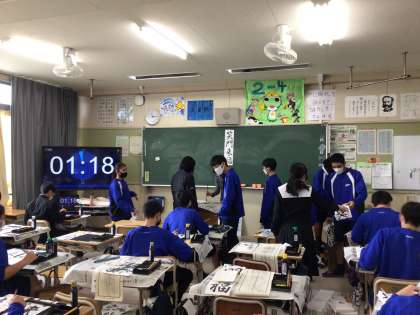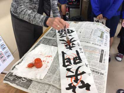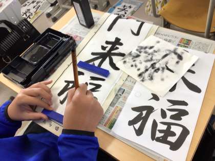 2年生の書写の授業です。先生が丁寧に添削してくださいます。