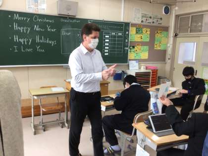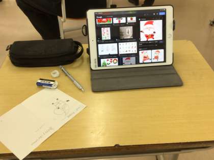 英語ではクリスマスカードを作っています。ALTの先生からもアドバイスをもらっています。