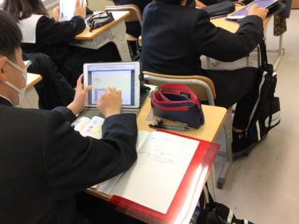 社会科で経済について学習しています。生徒が個々に会社を立ち上げています。
