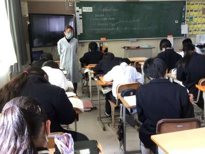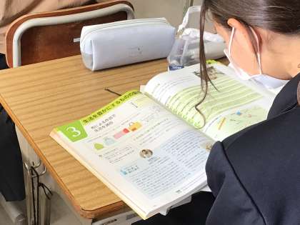 家庭科ではペットボトルケース作りで学んだことの振り返りをしています。