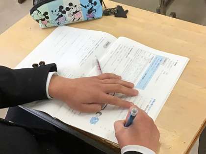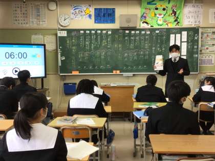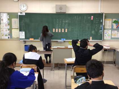 国語では文法について学習しています。日本語教室ではより視覚化した教材を使っています。