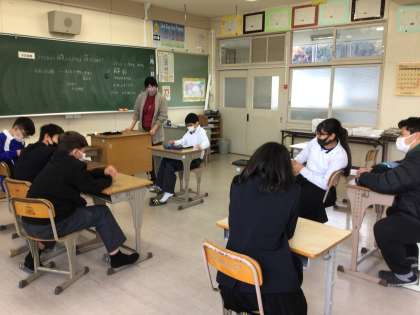 アメリカ人と移民の人たちは仲良くなれるかということについて、日本語とポルトガル語を交えて意見を伝え合っています。