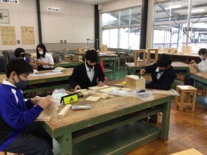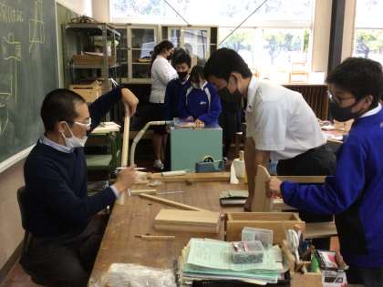 技術では本棚作りが順調に進んでいます。きれいな仕上がりになるよう丁寧に作業をしています。