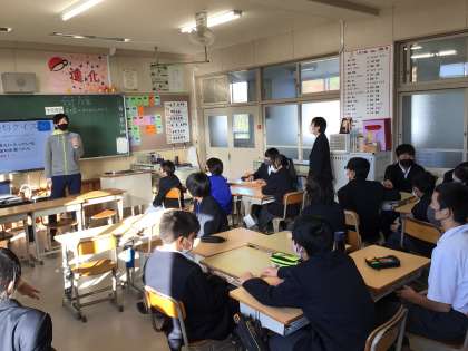 社会科の授業です。グループで問題を解きます。