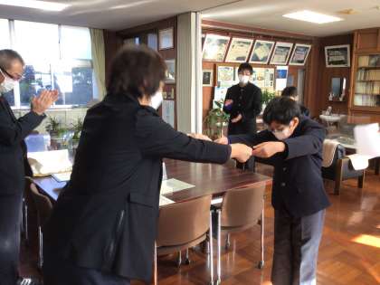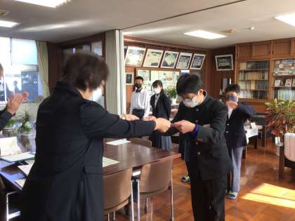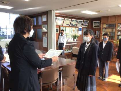 9月以降に表彰された生徒たちへの表彰伝達を校長室にて行いました。