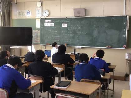 数学は少人数指導を行っています。それぞれの教室で図形について学習しています。
