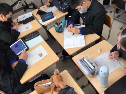 道徳の授業の様子です。正義感についての考えが葛藤しています。