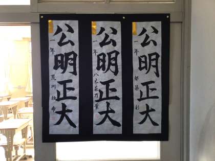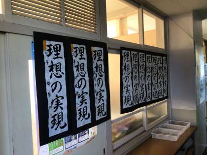 書き初め大会の作品を校内に掲示しています。