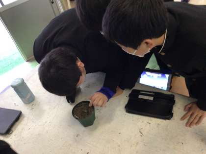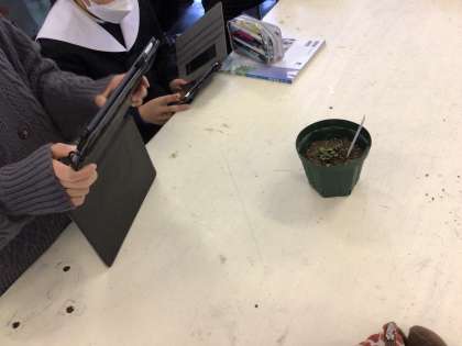 忘れな草の観察と成長記録をタブレットで行っています。