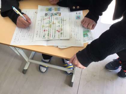 日本語教室では、リライト教材を使って学習内容の理解を深めます。
