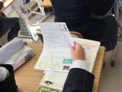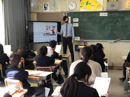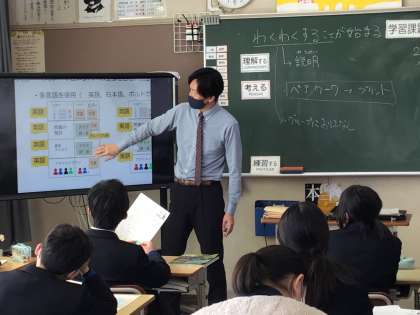 社会科では、「ポスターセッション発表」の学習について話を聞いています。