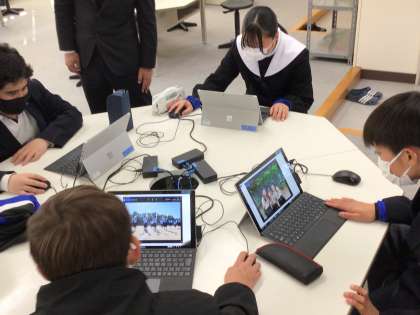 3年生を送る会の準備を、1、2年生がチームごとに考えています。