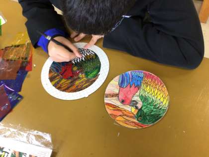 美術では、個々の課題について作品を仕上げています。