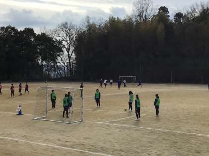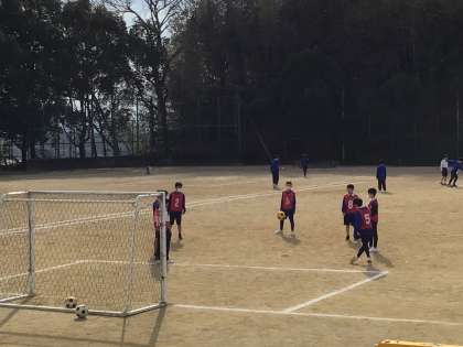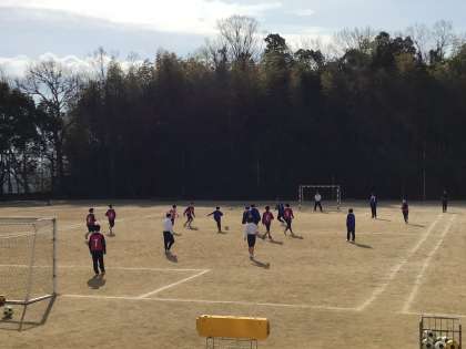 体育の授業は、サッカーです。グループで作戦を立てて練習をしてゲームを楽しみます。