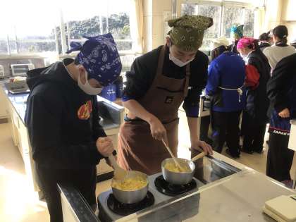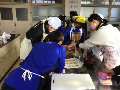 家庭科では調理実習でジャムを作っています。視覚化された手順書に従って、手際よく完成に近づけています。