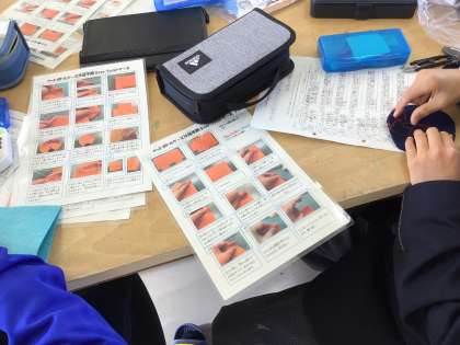 家庭科の裁縫は、学習手順書で考えて作業を進めます。