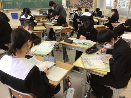 社会では経済について学習しています。グループで協力しながら調べ学習に取り組んでいます。